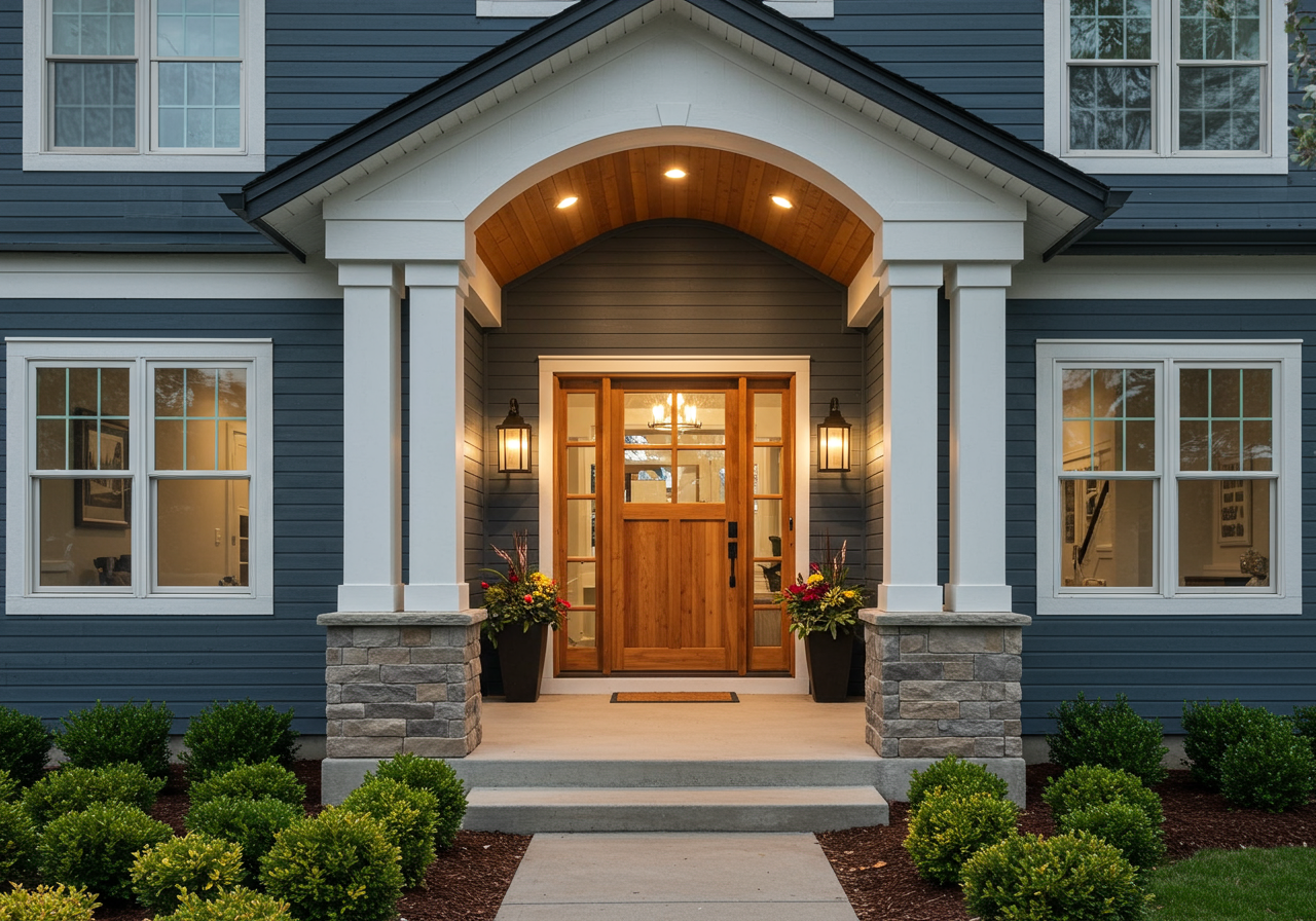 Give your home a lift by painting your front door a warm, neutral color. The most popular front door colors for 2023 are: black, shades of blue, sage green, gray, wood-tones and even red. Just make sure the color you choose matches the rest of the house for a cohesive look.