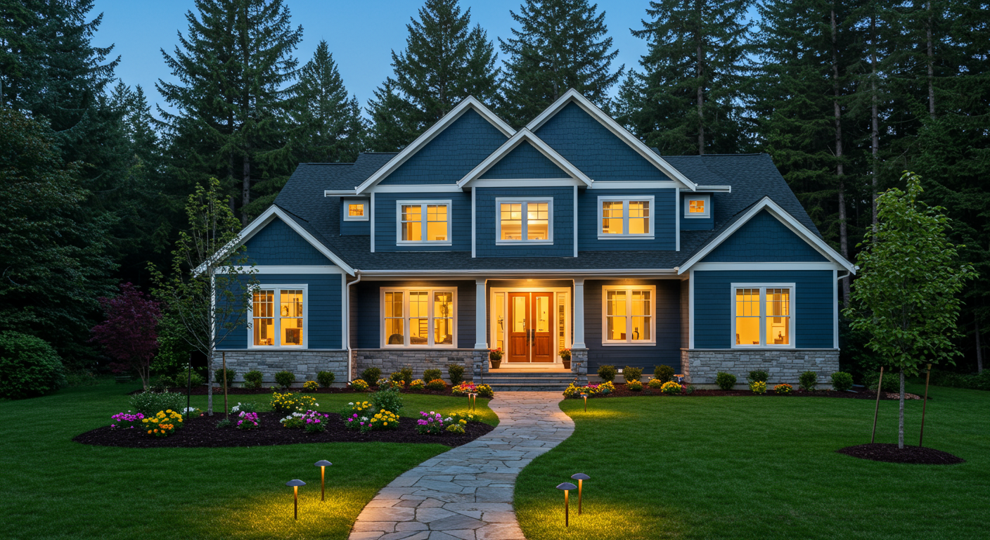 The right lighting can increase your home’s appeal, especially in the evenings. Choose warm-colored lights that complement your landscape and walkway for a cozy an welcoming vibe.